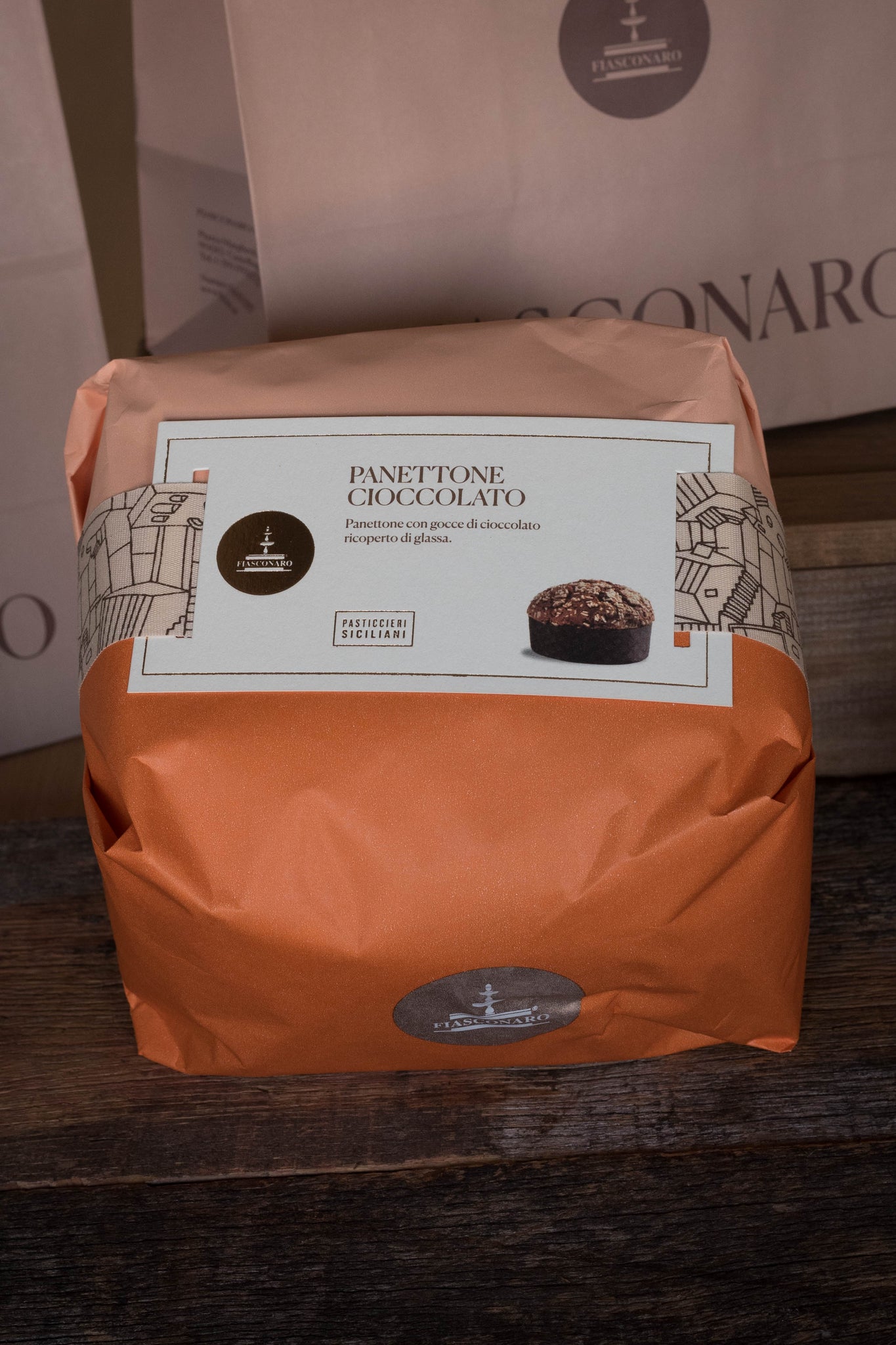 Panettone au chocolat avec gouttes de chocolat recouvertes de glaçage (750g)