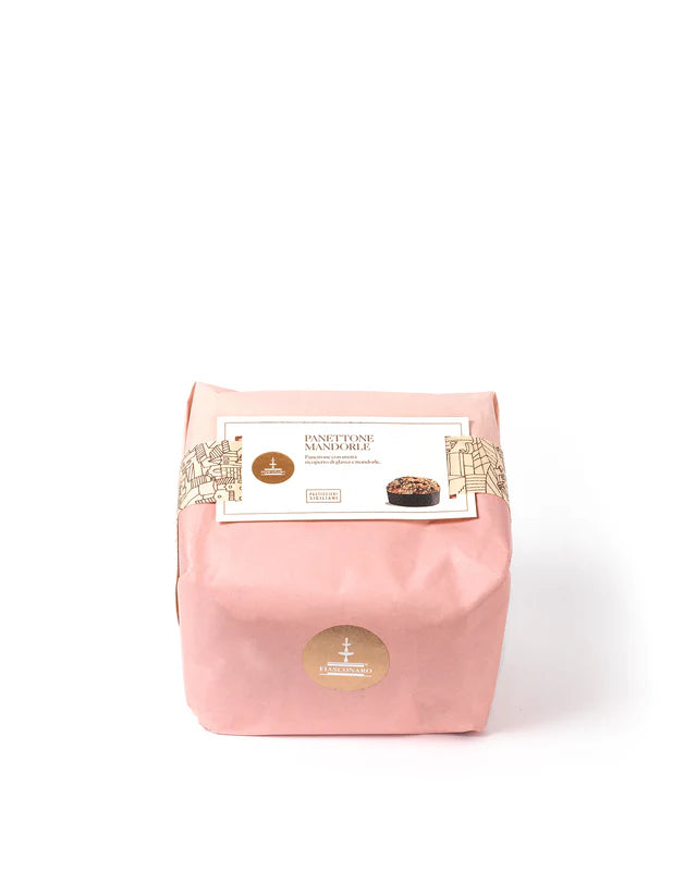 Panettone aux amandes avec raisins enduit de glaçage et amandes.(750g)